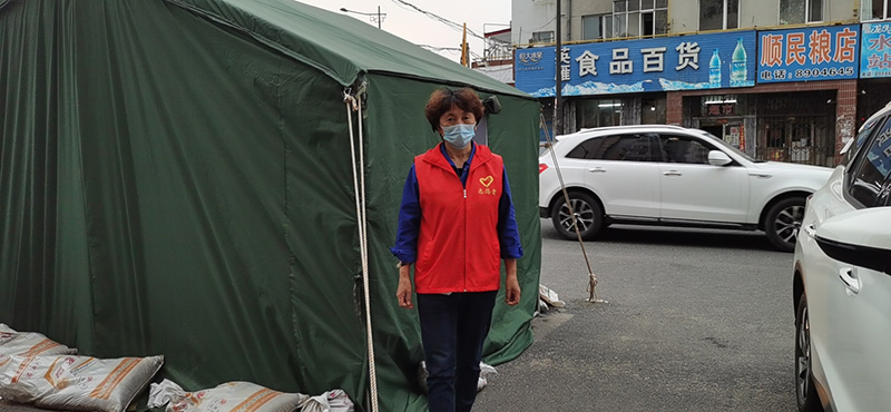 于是,她花了1200元,買個帳篷,在工地做了幾根釬子,請公司項目經理派兩個人帶著工具,把帳棚固定在小區(qū)門口。
